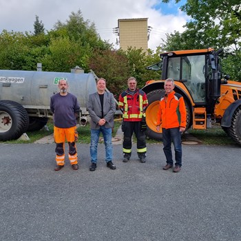 Durch die Trockenheit steigt auch im Frankenwald die Zahl der Waldbrände an. Dabei zeigt sich, dass Güllefässern eine wichtige Rolle bei der Versorgung der Feuerwehren mit Löschwasser zufällt. Da im Markt Nordhalben keine solchen Fässer vorhanden sind, hat die Marktgemeinde in Zusammenarbeit mit der Feuerwehr Nordhalben nach einer kostengünstigen Möglichkeit gesucht. Die Wahl fiel schließlich auf einen gebrauchten Pumptankwagen mit einem Volumen von 7m³, der vom Kommunalschlepper des Bauhofes gezogen wird. Der Markt Nordhalben bedankt sich herzlich bei den bayerischen Staatsforsten Nordhalben und dem Feuerwehrverein Nordhalben für ihre Spenden zur Anschaffung des Pumptankwagens.