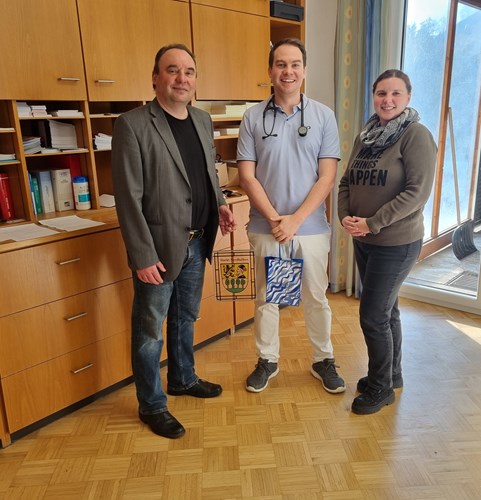 die Suche nach Hausärzten ist für viele ländliche Kommunen eine große Herausforderung. Auch der Markt Nordhalben hat in den letzten Jahren „an vielen Stricken gezogen„ um Nachfolger für die beiden Hausarztpraxen in Nordhalben zu finden. Zum 01. Januar 2026 hat Herr Sven Wendschuh, Facharzt für Allgemeinmedizin, die Praxis von Herrn Dr. Vorisek übernommen. Für Nordhalben ein „Sechser im Lotto“, so Nordhalbens Bürgermeister Michael Pöhnlein. Herr Wendschuh bedankte sich für die Unterstützung durch den Markt Nordhalben. Das eingespielte Team der Praxis unterstütze seine Arbeit hervorragend. Ihm und seiner Familie gefalle es sehr gut im Frankenwald. Da seine Frau eine gebürtige Nordhalbenerin sei, ist ihm das „Ankommen“ in Nordhalben auch leicht gefallen.