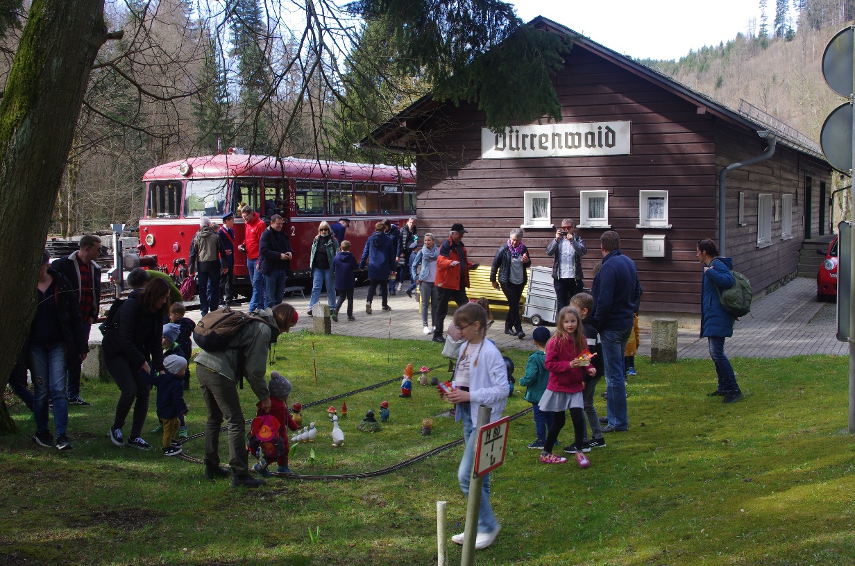 Für die jüngsten Fahrgäste hat der Verein eine besondere Überraschung parat. Unterwegs hält der Zug traditionell zum Osternestersuchen an. Am Bahnhof Nordhalben erwartet die Fahrgäste ein bewirtschaftetes Rahmenprogramm mit Steaks und Bratwürsten vom Grill sowie Kaffee und Kuchen in den beiden beheizten Speisewagen. Bei schönem Wetter ist der Biergarten geöffnet.