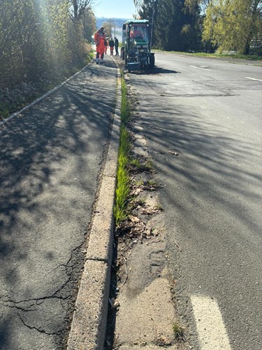Damit werden innerhalb kurzer Zeit Rinnsteine und auch andere Oberflächen umweltfreundlich vom dort nicht gewünschten Grün und Ablagerungen „befreit“.