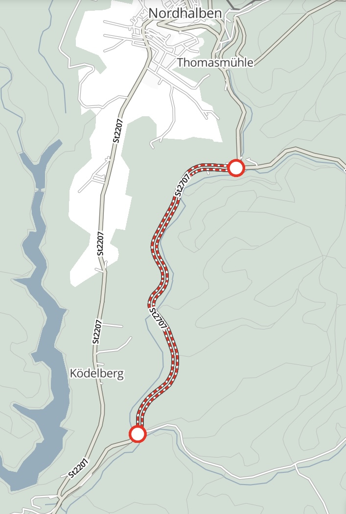 Im Zeitraum vom 19.01.2026 bis 06.02.2026 jeweils in der Zeit von 08.00 Uhr bis 16.00 Uhr ist die Staatsstraße 2707 (St 2707) im Bereich zwischen den Ortsteilen Mauthaus und Neumühle aufgrund von Baumfällarbeiten komplett gesperrt (siehe Abbildung).