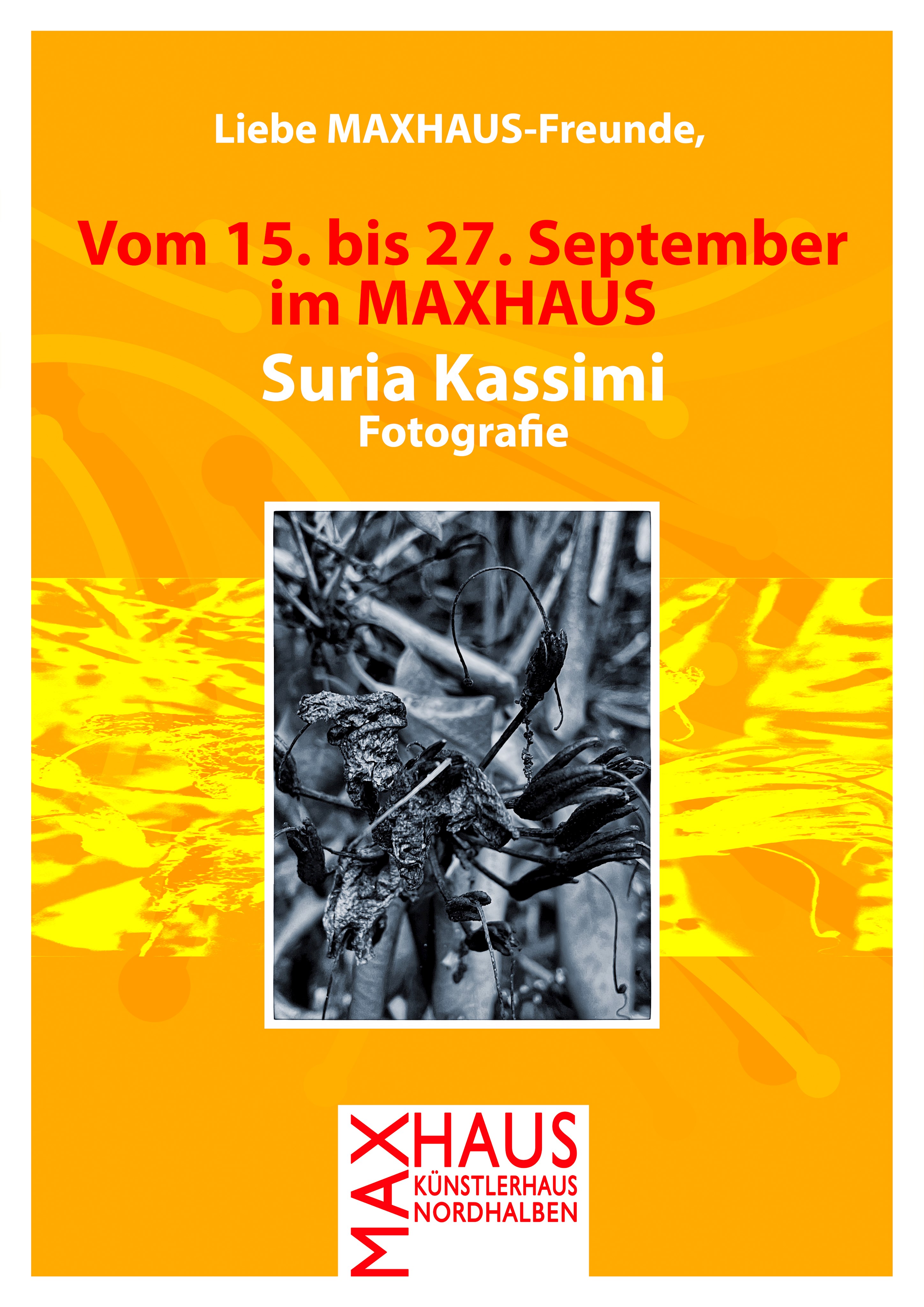 Suria Kassimi - Fotografie Suria Kassimi - Fotografie - https://suriakassimi.wixsite.com/website | https://www.instagram.com/suriakassimi/ Diese Veranstaltung im iCal-Format speichern Plakat_Suria-Kassimi_2024.jpg vom 15.09.2024 bis 27.09.2024 Künstlerhaus „MAXHAUS" Lobensteiner Str. 11 96365 Nordhalben Ausstellung