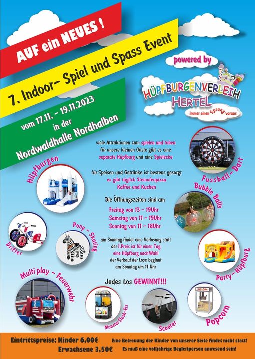 Von Freitag, den 17. November bis Sonntag, den 19. November findet das 7. Indoor- Spiel und Spaß Event in der Nordwaldhalle statt.