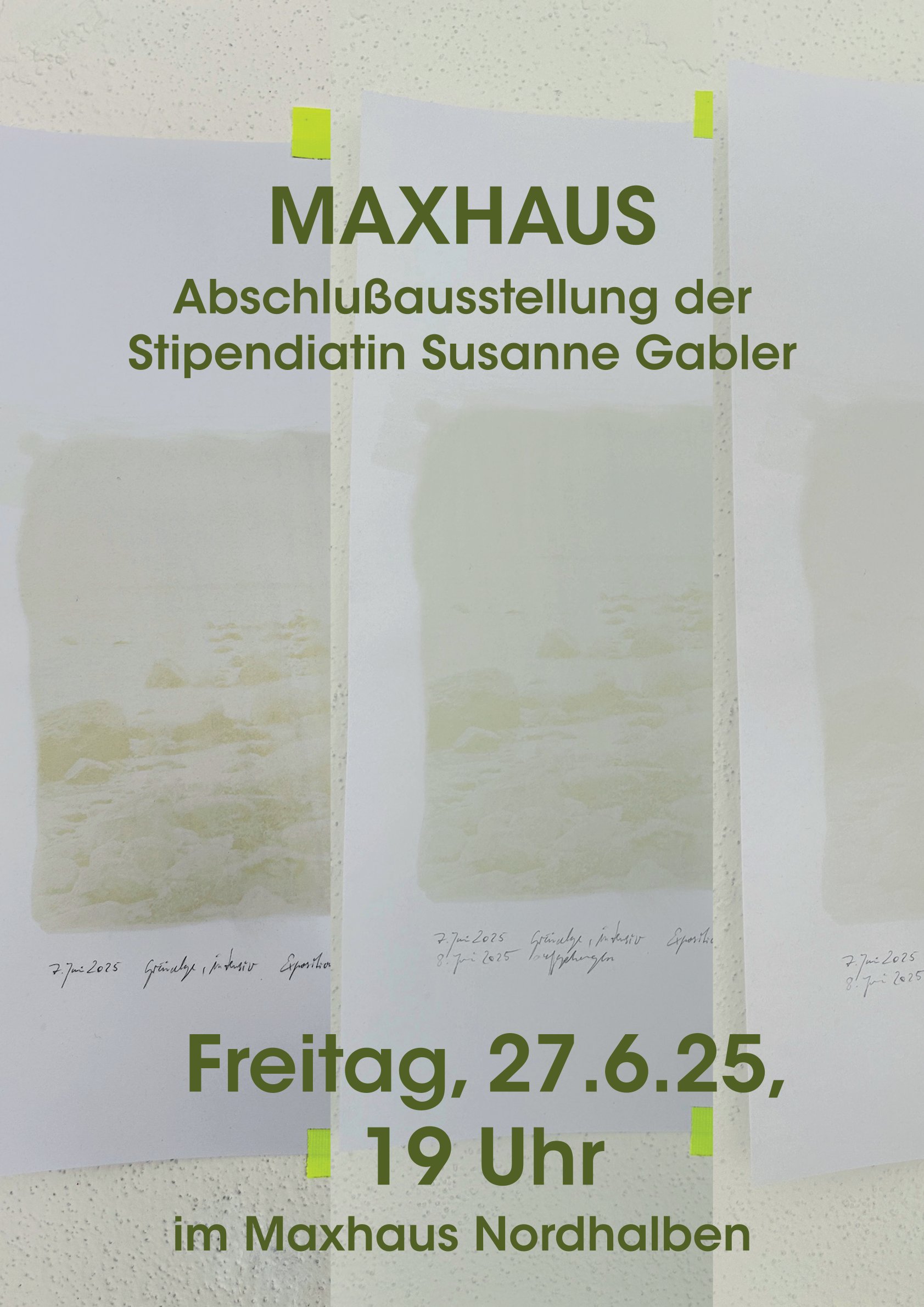 Abschlussausstellung Kunstaktion "mind the Maps" von Susanne Gabler Am Freitag, den 27.06.2025 findet die Abschlussausstellung der Kunstaktion "mind the Maps" von Stipendiatin Susanne Gabler im Künstlerhaus "Maxhaus" statt. Diese Veranstaltung im iCal-Format speichern Abschlussausstellung Susanne Gabler 27.06.2025 19:00 Uhr Künstlerhaus „MAXHAUS" Lobensteiner Str. 11 96365 Nordhalben Ausstellung