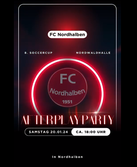 After-Play-Party Soccercup 2024 Am Samstag, den 20.01.2024 findet im Anschluss an den Nordwald-Soccercup die After-Play-Party in der Kegelstube der Nordwaldhalle statt. Diese Veranstaltung im iCal-Format speichern Afterplay-Party.PNG 20.01.2024 18:00 Uhr Nordwaldhalle Kronacher Straße 57 96365 Nordhalben FC Nordhalben e.V. Tanzveranstaltung