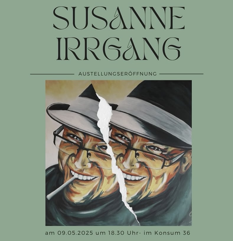 Eröffnung der Ausstellung von Susanne Irrgang Am Freitag, den 09.05.2025 ist um 18.30 Uhr die Eröffnung der Ausstellung von Susanne Irrgang im Konsum 36. Diese Veranstaltung im iCal-Format speichern Ausstellungseröffnung Susanne Irrgang 09.05.2025 18:30 Uhr Konsum 36 Kronacher Straße 36 96365 Nordhalben Ausstellung