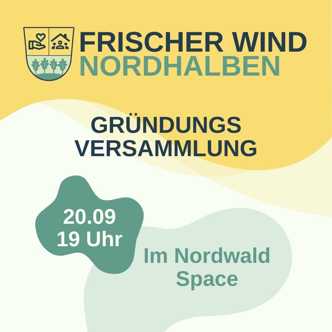 Am Freitag, den 20.09.2024 findet die Gründungsversammlung des Vereins "Frischen Wind Nordhalben e.V." im Nordwald Space statt.
