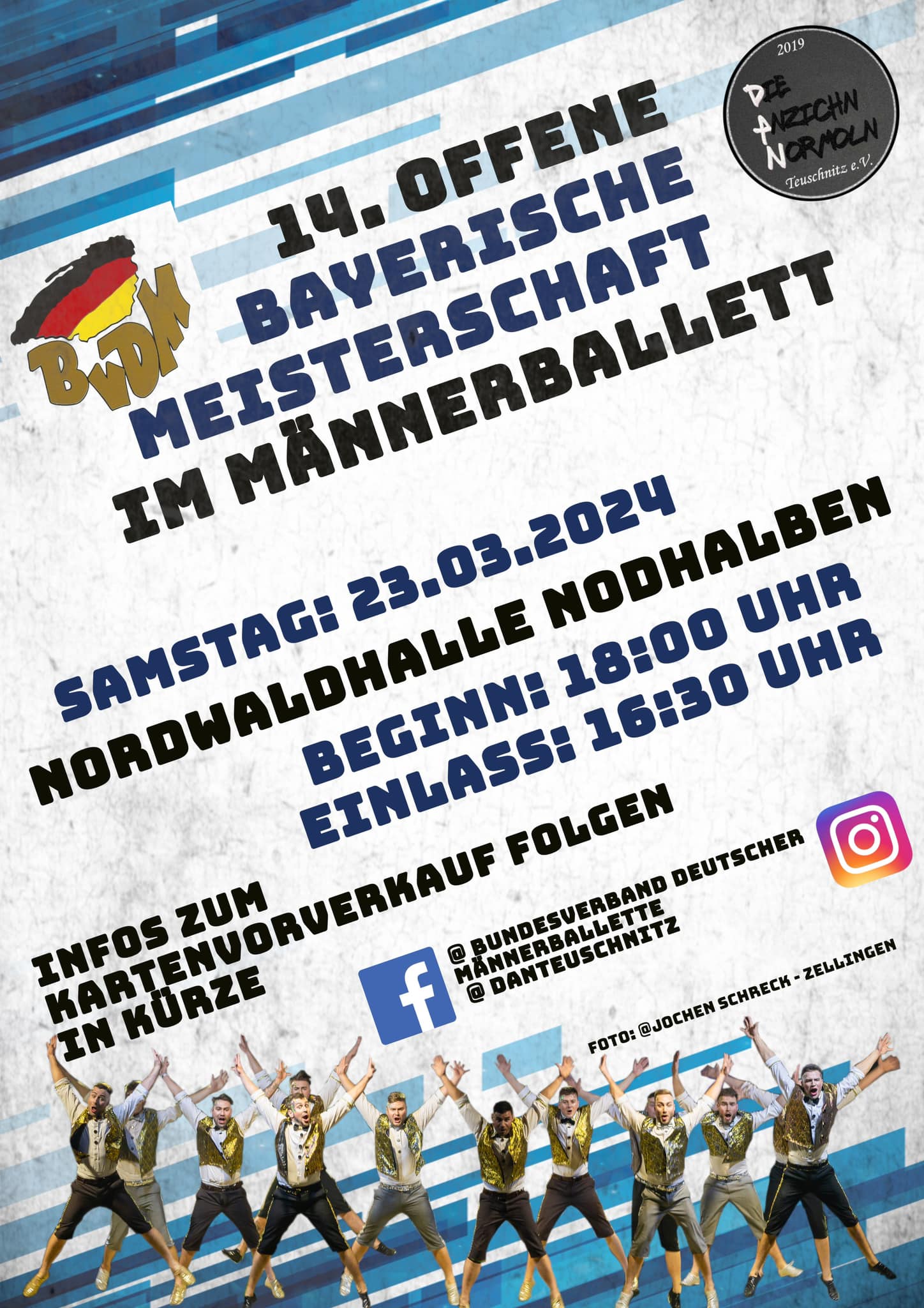 14. Bayerische Meisterschaft im Männerballett Am Samstag, den 23.03.2024 findet ab 18:00 Uhr die 14. Bayerische Meisterschaft im Männerballett in der Nordwaldhalle statt. Veranstalter ist der DAN Teuschnitz e.V. Diese Veranstaltung im iCal-Format speichern Männerballett 23.03.2024.jpg 23.03.2024 18:00 Uhr Nordwaldhalle Kronacher Straße 57 96365 Nordhalben Tanzveranstaltung