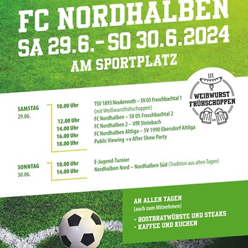Das Sportfest des FC Nordhalben findet am Samstag und Sonntag, den 29. + 30.06.2024 am Sportplatz statt.