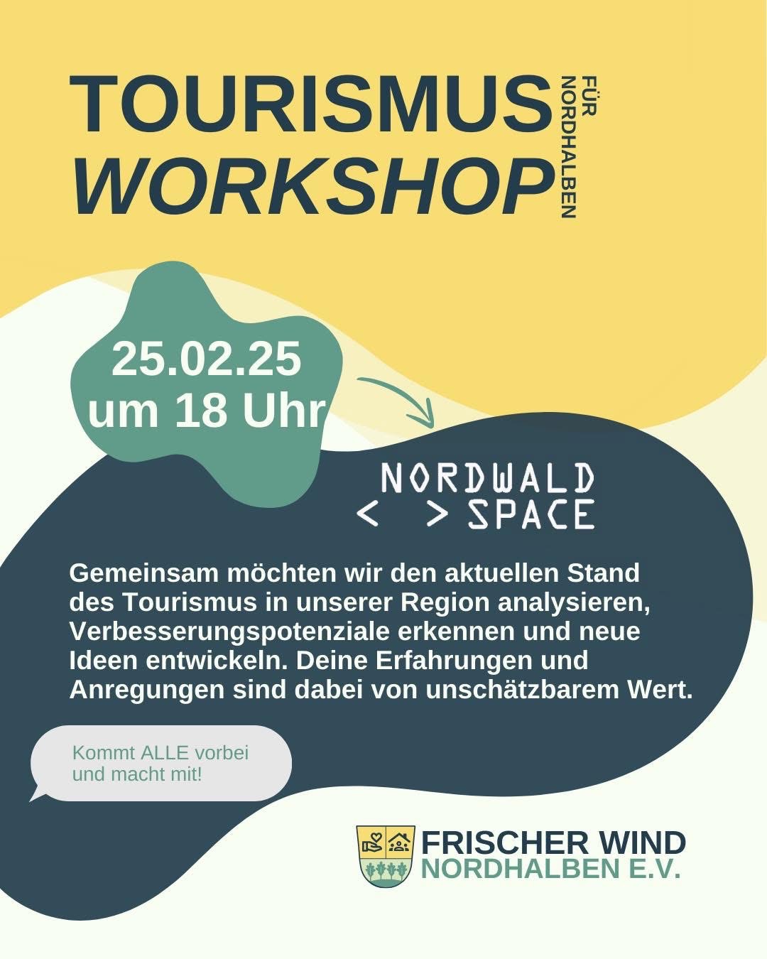 Am Dienstag, den 25.02.2025 um 18:00 Uhr findet ein Workshop zum Thema Tourismus im Nordwald Space statt.